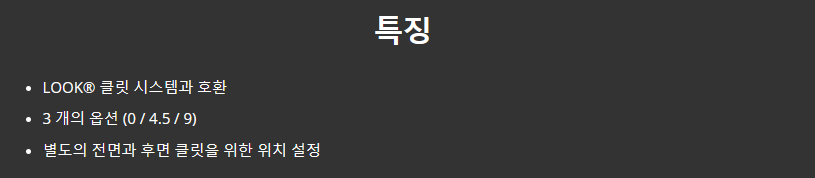 자이언트에서 생산한 제품이며 LOOK 클릿 페달과 호환되는 제품입니다.