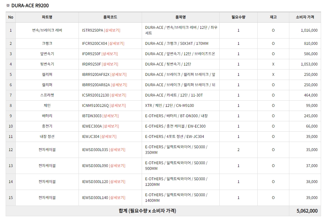 시마노 12단 Di2 그룹셋 입니다. (파워미터 포함)