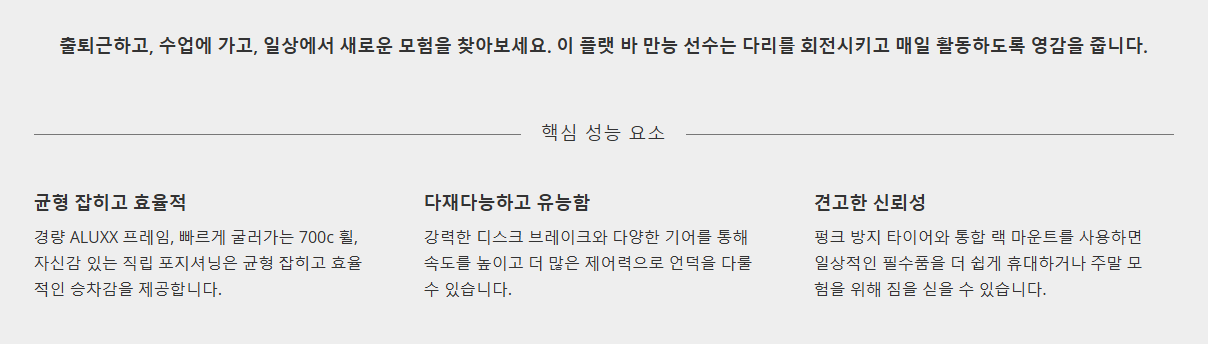 알로이 하이브리드 디스크 프레임 + 카본 포크 구성